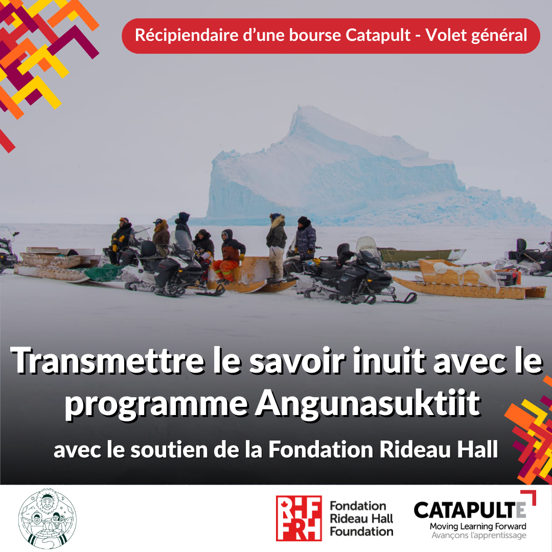 Le soutien offert par l’initiative Catapulte Canada de la Fondation Rideau Hall permettra à l’Ilisaqsivik Society de s’appuyer sur le succès du programme Angunasuktiit pour notamment étendre ses activités, créer des occasions d’apprentissage pour les jeunes et partager son modèle éducatif éprouvé avec d’autres communautés de l’Arctique.