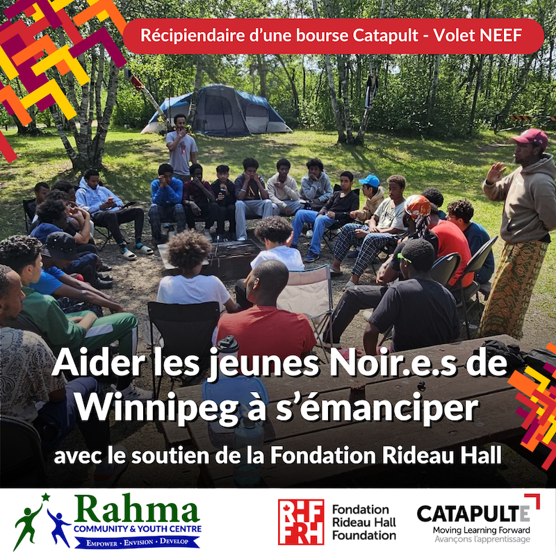 À Winnipeg, beaucoup de jeunes Noir.e.s qui sont soit réfugié.e.s ou nouvellement immigré.e.s font face à des obstacles qui les empêchent de rester à l’école, de trouver un emploi ou d’avoir un sentiment d’appartenance. Le racisme, les traumatismes, la pauvreté et les barrières linguistiques sont autant de difficultés qui les privent souvent de possibilités. Le Rahma Community and Youth Centre s’efforce de changer cette donne grâce au programme RISE (Resilience, Identity, Skills, Empowerment), une initiative holistique ancrée dans la communauté qui s’est valu une aide financière de l’initiative Catapulte Canada de la Fondation Rideau Hall.