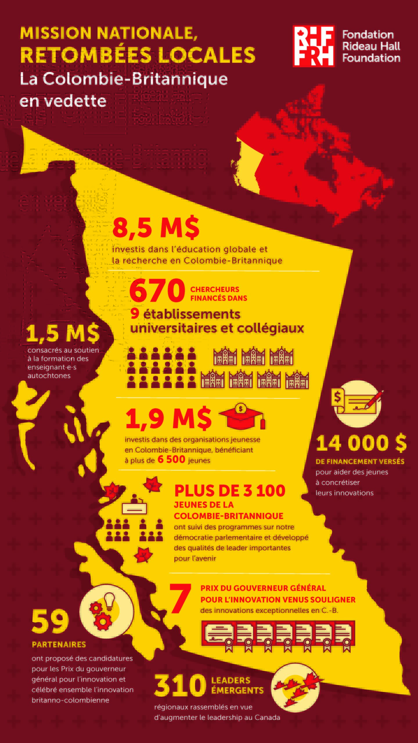 Nous croyons que chacun et chacune d’entre nous recèle un énorme potentiel pour résoudre des problèmes, apprendre, être au service des gens et porter des projets de manière à améliorer le pays. Pour réaliser ce potentiel, la FRH poursuit sans relâche son but d’ouvrir des horizons pour l’ensemble des citoyens et citoyennes tout en renforçant le tissu social. Découvrez l’impact que nous avons partout au pays.
