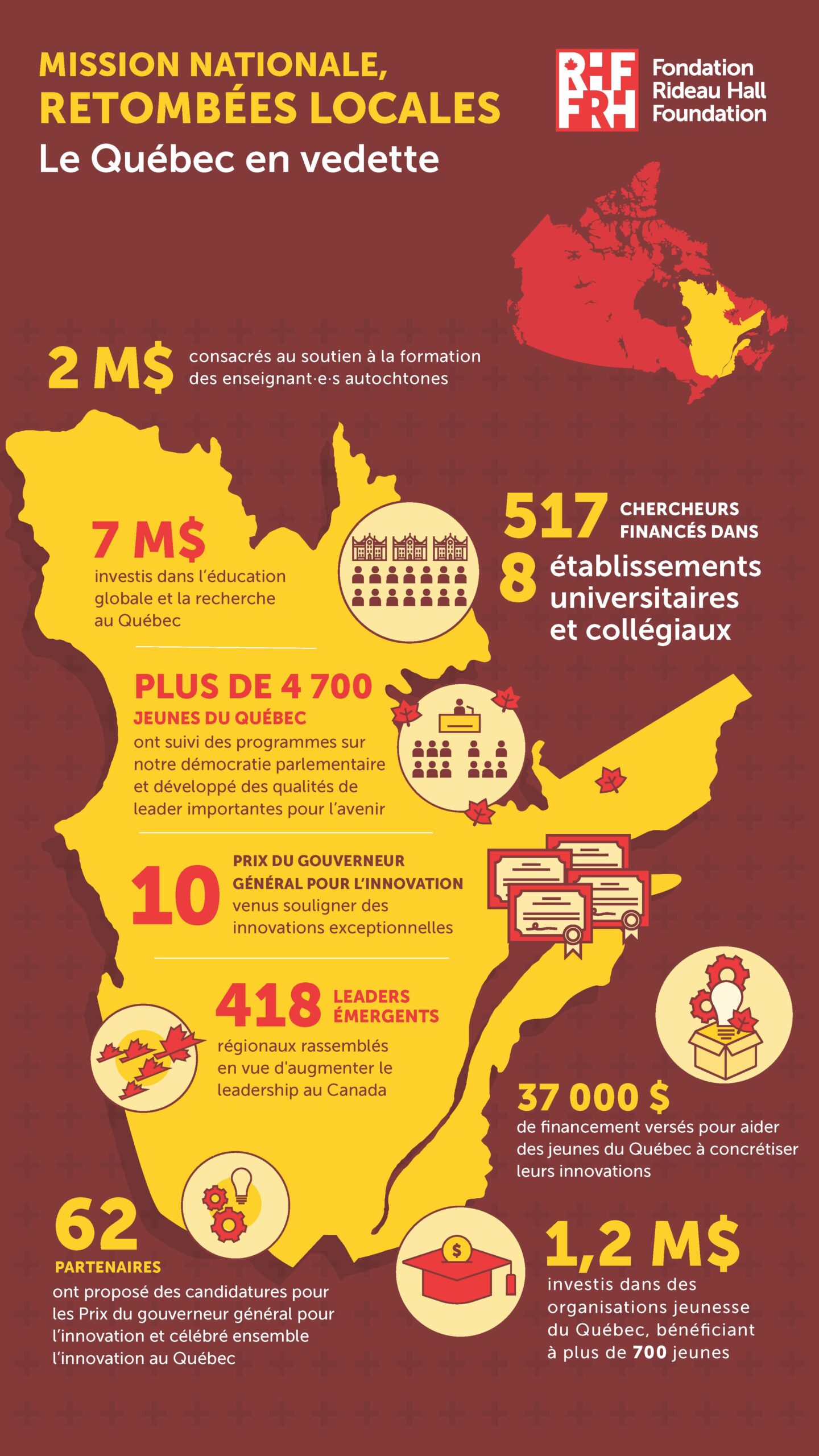 Nous croyons que chacun et chacune d’entre nous recèle un énorme potentiel pour résoudre des problèmes, apprendre, être au service des gens et porter des projets de manière à améliorer le pays. Pour réaliser ce potentiel, la FRH poursuit sans relâche son but d’ouvrir des horizons pour l’ensemble des citoyens et citoyennes tout en renforçant le tissu social. Découvrez l’impact que nous avons partout au pays.