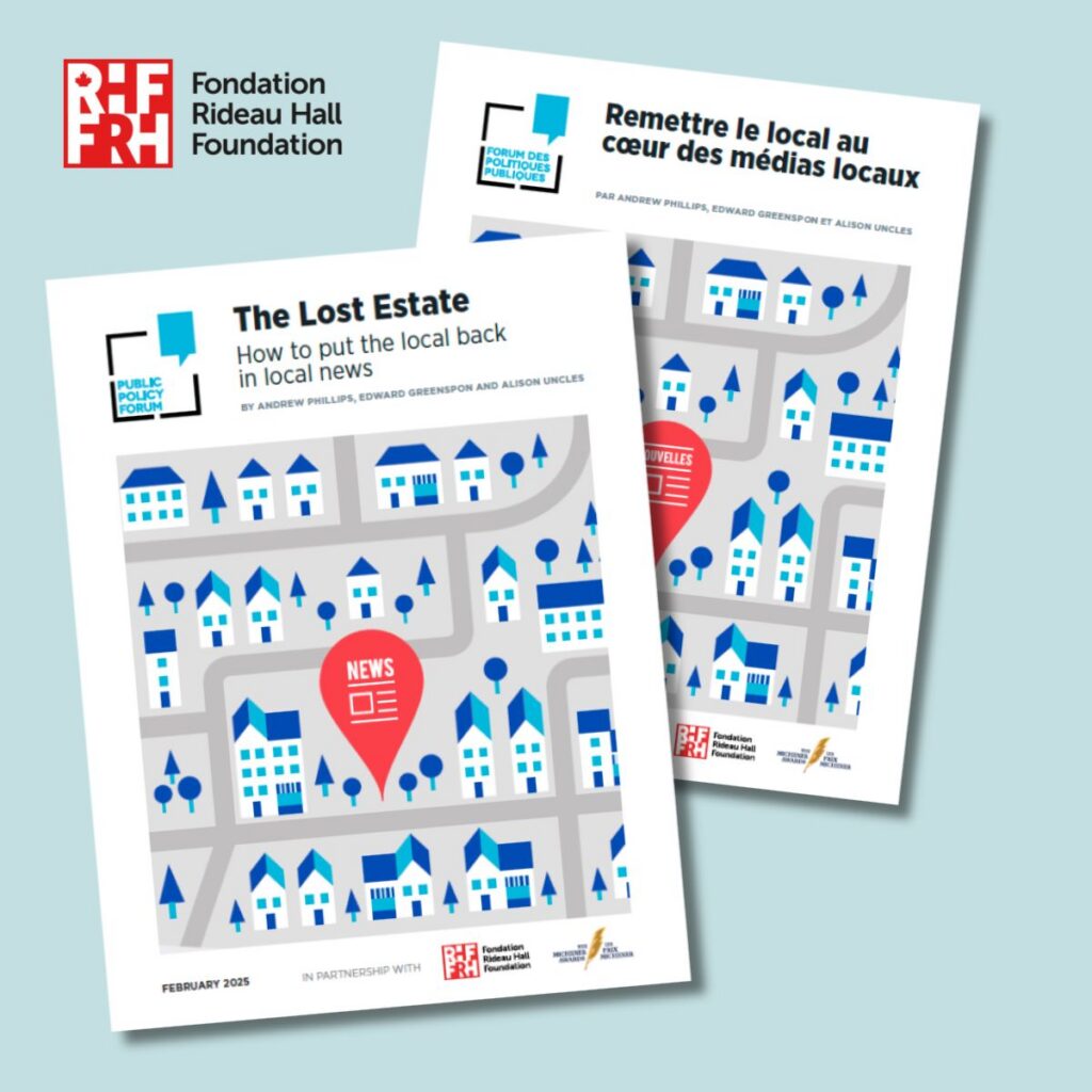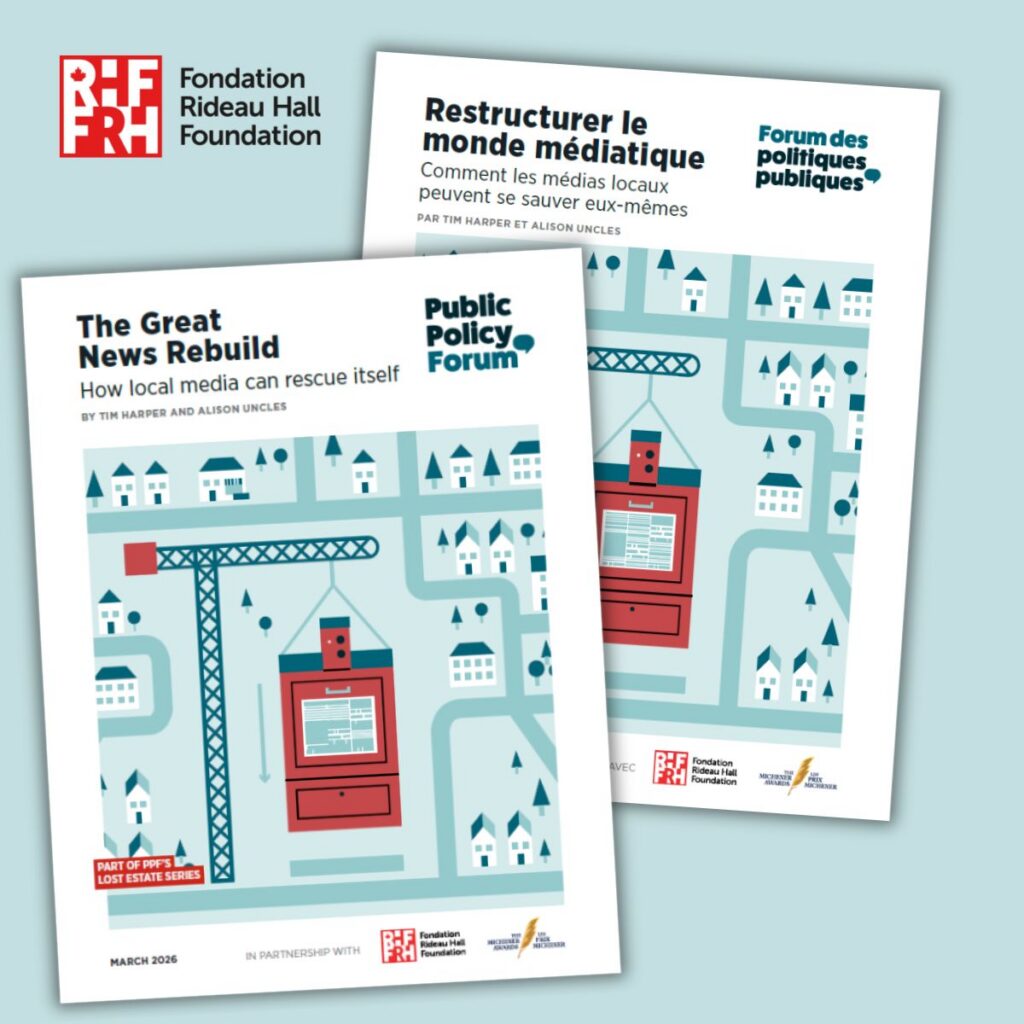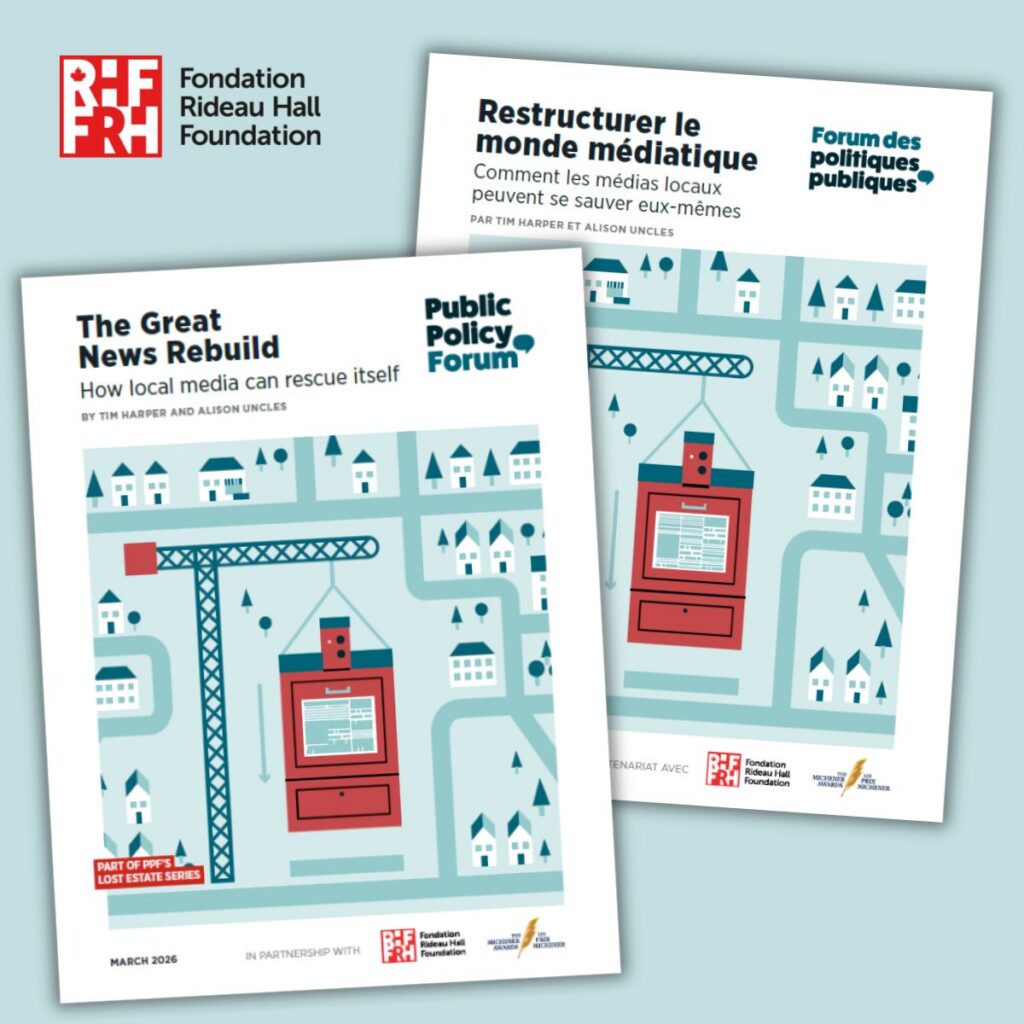 Restructurer le monde médiatique, le nouveau rapport commun du Forum des politiques publiques, de la Fondation Rideau Hall et de la Fondation des Prix Michener, explore les prérequis pour reconstruire le journalisme local au pays.