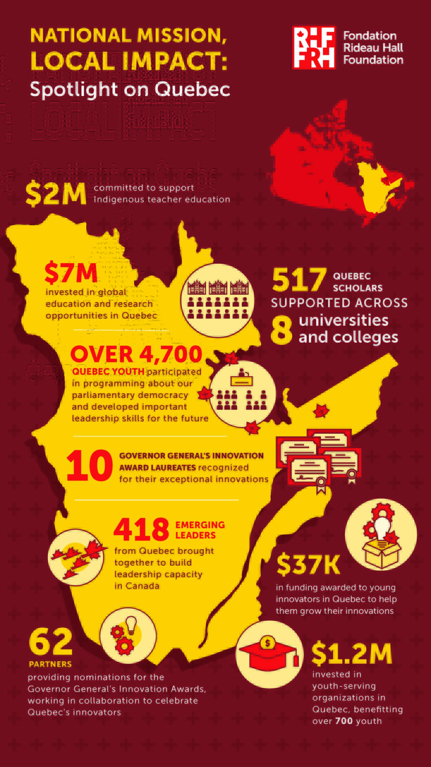 We believe in the enormous potential for people to problem-solve, learn, serve, and lead in support of creating a better Canada. To realize this potential, the RHF is relentless in its goal to create opportunities for Canadians and to connect communities along the way. Explore the impact we’re having across the country.
