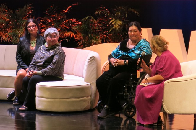 One highlight of WIPCE was RHF’s sponsorship of the Linguistic and Cultural Revitalization Panel on the main stage, which featured two RHF ITE grantee leaders: Louise Flaherty, an Inuk language champion and co-founder of Inhabit Education and Geraldine King, an Anishinaabe land-based education researcher and co-director of the Office of First Nations and Inuit Education at McGill University, alongside Hawaiian scholar Lilikalā Kameʻeleihiwa and Māori co-chairs Dr. Valance Smith and Dr. Rihi Te Nana.